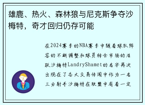 在NBA的激烈竞争中,雄鹿队凭借其深厚的阵容深度,成为了对手在赛季中最不愿面对的强敌之一。雄鹿队的阵容不仅有明星球员扬尼斯·安特托昆博的带领,还拥有丰富的替补深度,赋予了球队在各个位置上的强大实力。本文将从四个方面详细分析雄鹿队的阵容深度如何令对手望而却步。具体来说,将探讨球队的明星球员、替补席的深度、战术多样性以及防守体系的强大,这些因素共同塑造了雄鹿队作为顶级球队的强大竞争力。通过这些分析,本...